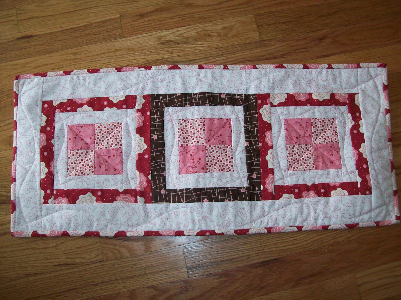 And I got my tablerunner quilted and bound too! I need to make another one for a shower gift, we have a niece that is getting married in July and her shower is in May.....so as I was making this runner, I thought you know a box of runners would be a nice gift. So I am going to make several for her for the different seasons - want to get this done this month so when I go back to work I won't have to worry about it.